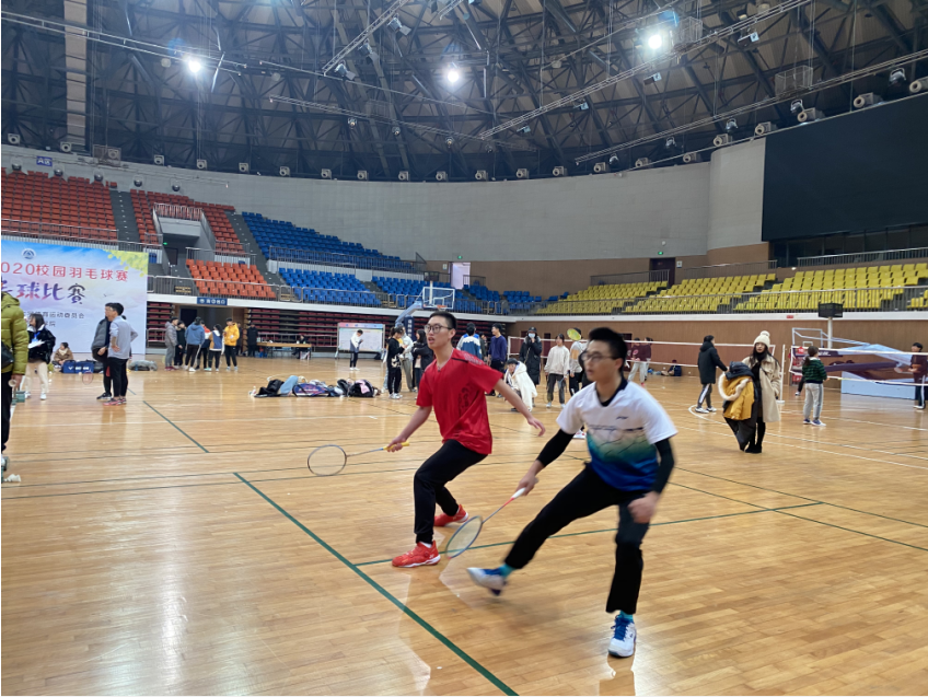 2020年校羽毛球赛在北区体育馆举行。小黄书