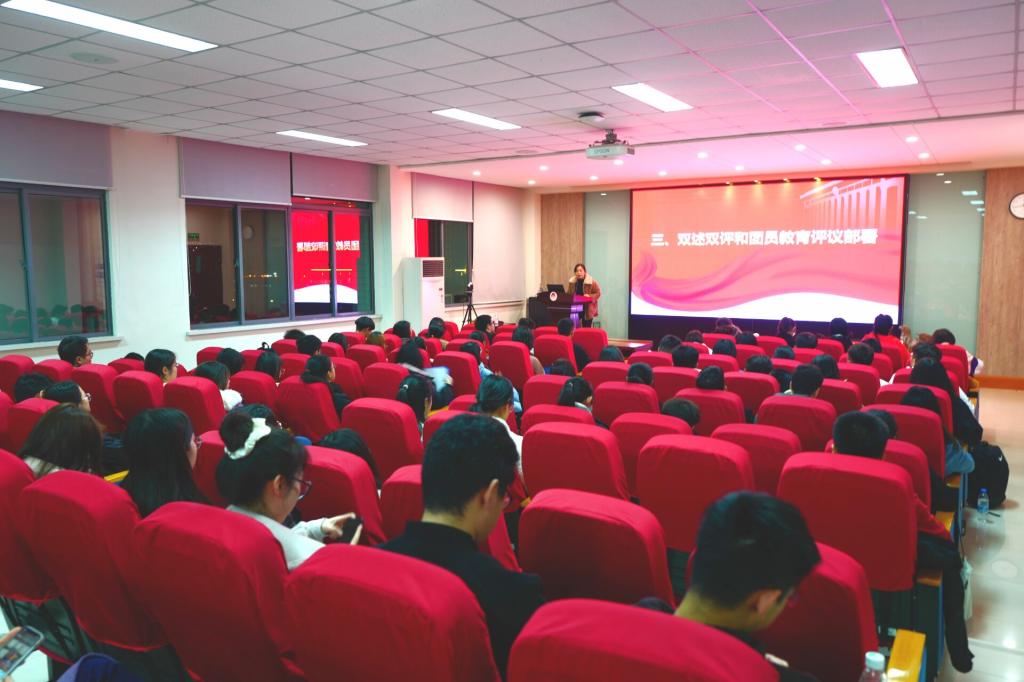 随后,分团委组织部、宣传部、督察部分别为新生班团讲解了团支部的具体工作。督察部部长曹语轩讲解了“推优”工作的流程和要点,组织部部长宋洁讲解了青年大学习和团日活动内容及相关要求,宣传部部长白德华讲解了团学小黄书新闻