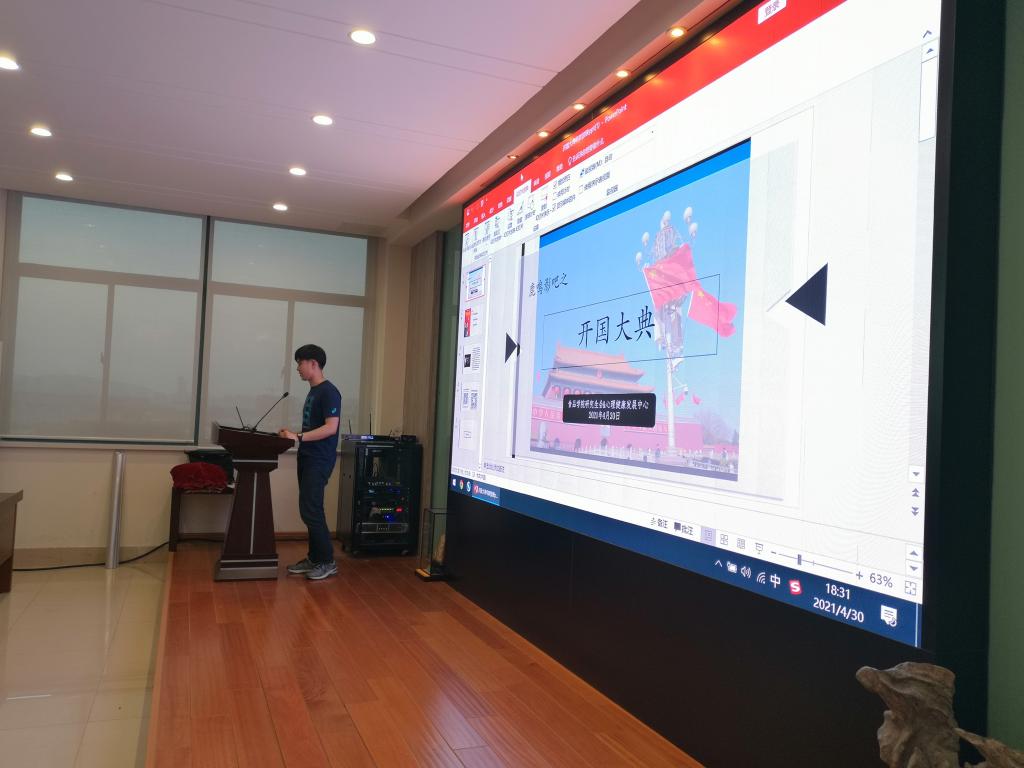 “鹿鸣放映室”心理主题观影活动放映的3部影片分别为《开国大典》、《海上钢琴师》、《幸福终点站》。《开国大典》用纪实手法,展现了从中国共产党取得“三大战役”的胜利,到1949年10月1日在北京举行“开国大典”的历史过程,以严谨纪实的态度,艺术的表现形式,回溯了新中国成立的重要节点和初心。《海上钢琴师》整部影片以音乐为线索,勾勒了主人公“1900”的一生,呈现他的生与死、悲与喜,他的情感世界,他眼中的世态炎凉和众生相。《幸福终点站》讲述主角前往美国途中家乡发生政变,政府被推翻,所持证件不被美国入境当局承认,被拒绝入境却又不能回国,被迫滞留肯尼迪国际机场期间的故事。影片放映结束后,主持人还带领同学们进行游戏互动,相互交流观影感受。
