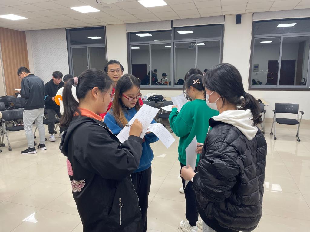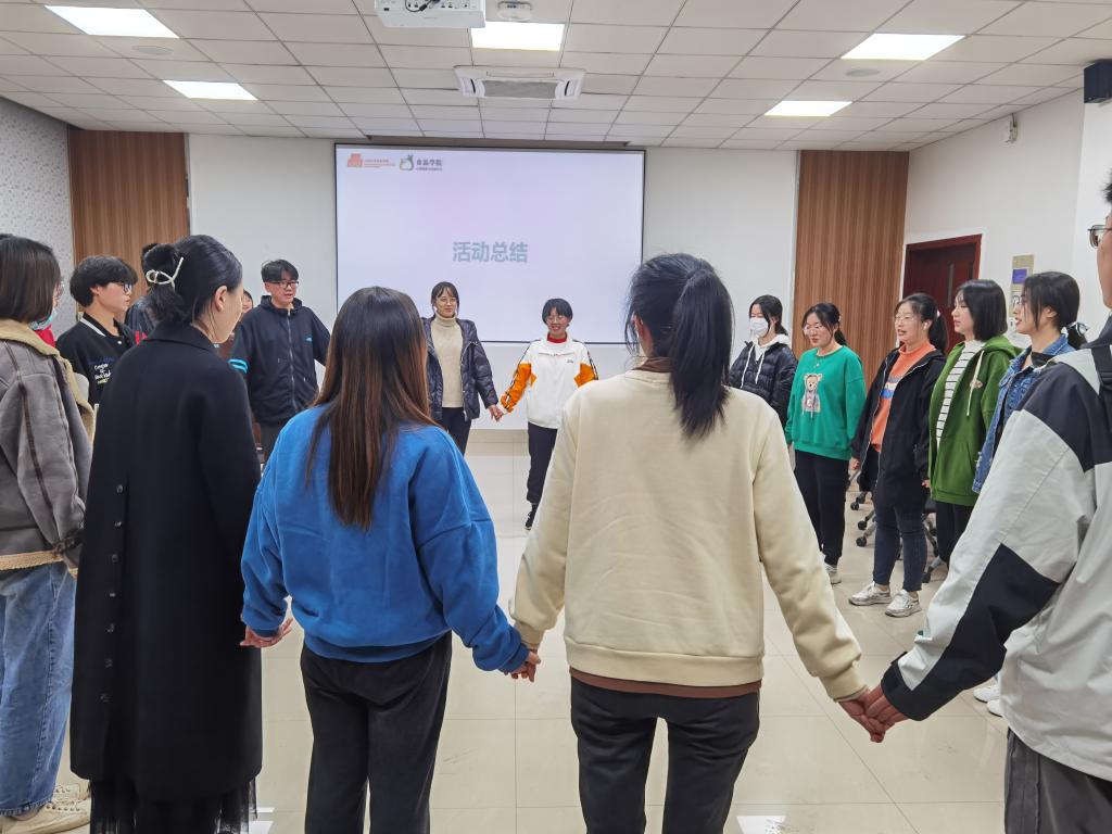 2021级新生心理委员破冰团辅活动在食品楼D916举行。小黄书