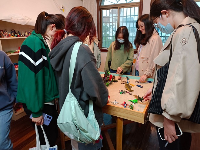 参观完楼外展板后,讲解员同学给到场同学每人发放一张便签,请同学们将自己最近的烦恼写到便签上,并集中扔进垃圾桶中。这个活动虽然简单,但却是对于同学们近期压力的一种释放。随后同学们跟随讲解员走进了笃学楼,参观了一楼预约接待室以及二楼的心理咨询室。在三楼的沙盘室,讲解员为同学们普及了沙盘治疗的理念,并请每一个同学亲手体验沙盘,使同学们产生了浓厚兴趣。
