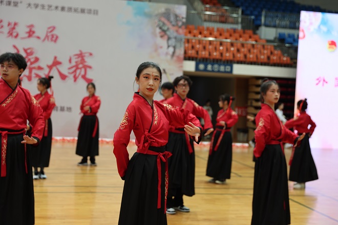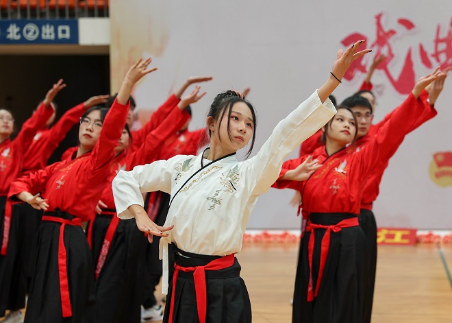 的选手们入场井然有序,动作整齐划一,或长袖飘飖、裙袂生风;或蛾眉轻敛、素手成拳,食品学子在比赛中精神饱满、动作整齐划一,赢得了在场观众的阵阵掌声。表演最后,小黄书