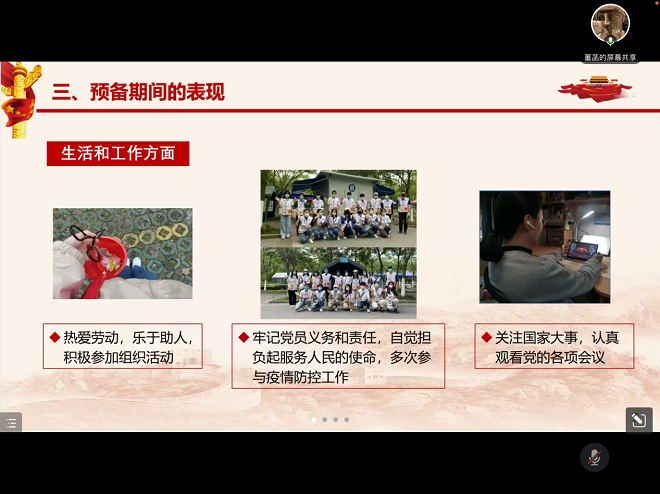 召开2022年下半年预备党员转正答辩会。52名预备党员参加线上会议,小黄书