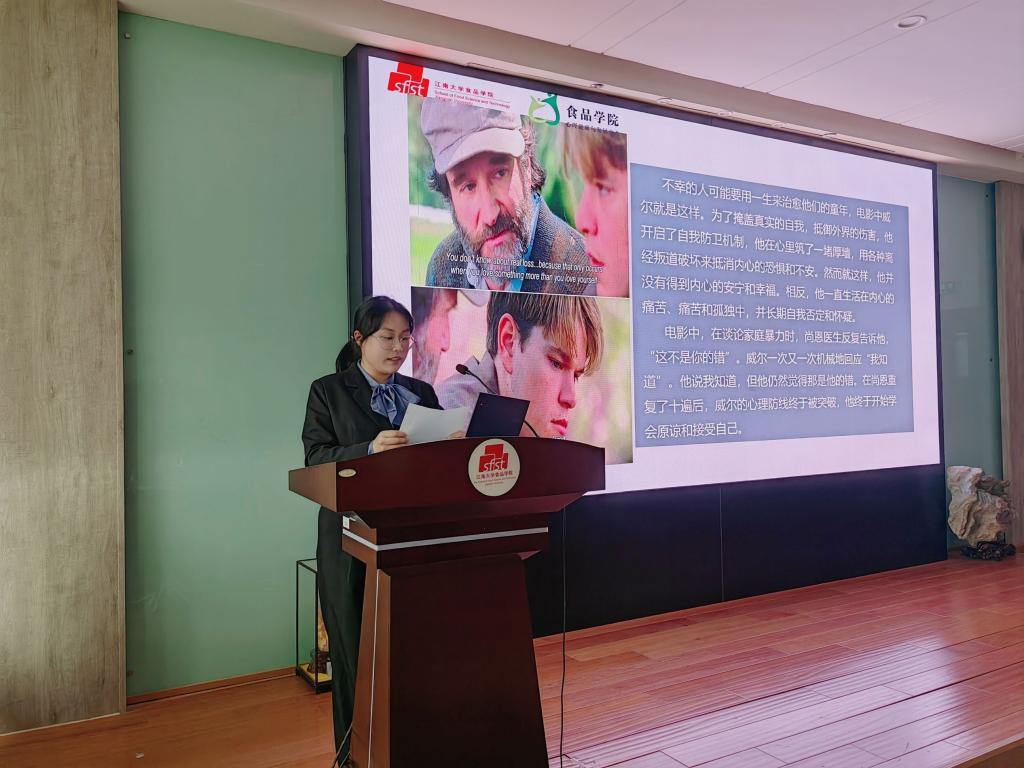 影片中涉及话题较多,有关于选择、爱情、友情、自我与救赎等。观影结束后,同学们踊跃交流分享观影感受,现场氛围轻松愉悦。食科2004班徐嘉辰就影片的深刻片段结合自己的生活分享了自己的感受:“在不断的成长和历练过程中,我们不仅要明确人生目标,遇到挫折适时学会与自己和解。”