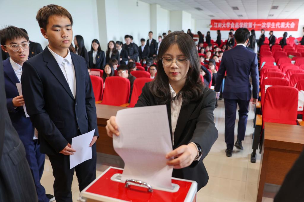 开幕式后,本科生代表和研究生代表分别前往分会场进行第十一次学生代表大会以及研究生代表大会全体会议。院学生会主席团成员张艺龙代表第十届学生会向大会作了题为《牢记使命创佳绩,奋勇争先铸辉煌,锐意进取,砥砺前行,共绘学生工作新蓝图》的工作报告。院研究生会执行主席杨忠煜代表第十届研究生会向大会作了题为《牢记初心使命,弘扬时代精神,为全面建设社会主义现代化国家贡献青春力量》的工作报告。他们分别回顾了过去一年的工作,提出未来一年的工作方向和目标,指出学院学生会、研究生会将继续深入学习贯彻宣传党的二十大精神,高举中国特色社会主义伟大旗帜,继续发扬“江南食品人,敢为天下先”的精神,服务学校“奋进计划”发展大局,为实现祖国的繁荣和民族的复兴不懈奋斗。