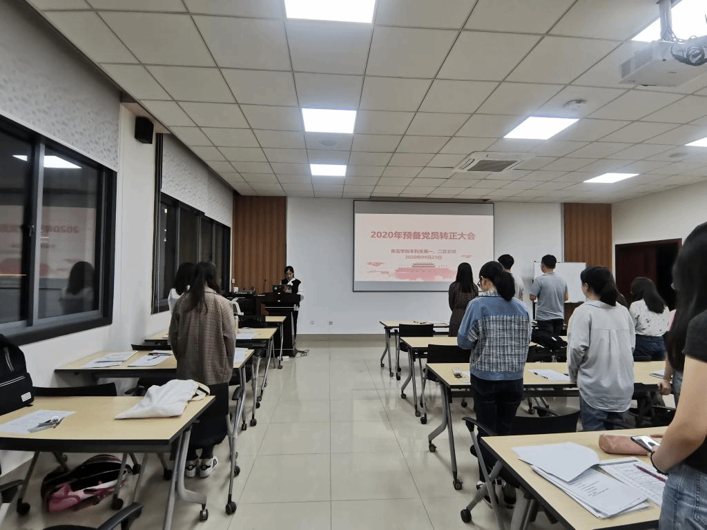 本科生第一、二党支部在学院D916举行预备党员转正大会,会议由姚诗韵同志主持。