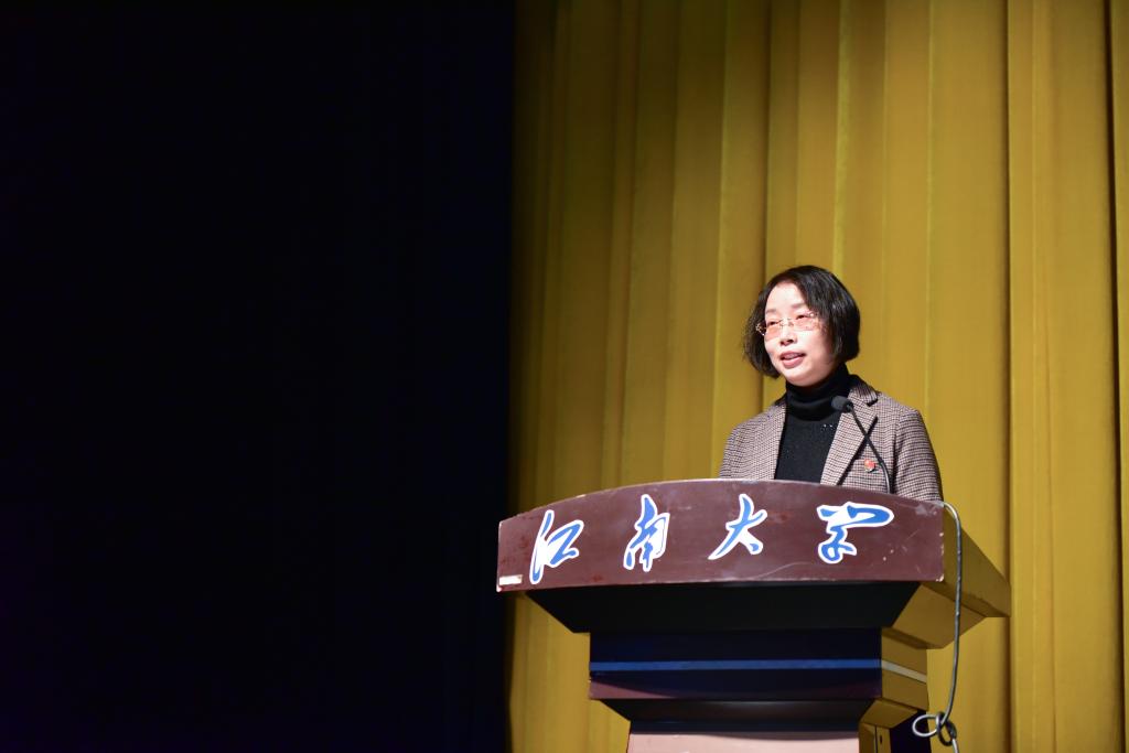 院党委书记傅莉莉做报告