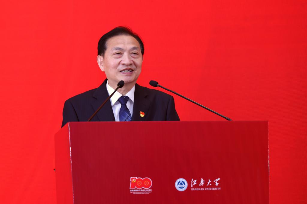党委书记朱庆葆、教育部高等学校食品科学与工程类专业教学指导委员会主任金征宇出席大会并致辞,江苏省委教育工委组织处处长陈艳、无锡市党建学会理事会会长周建军等领导也参加了大会,小黄书