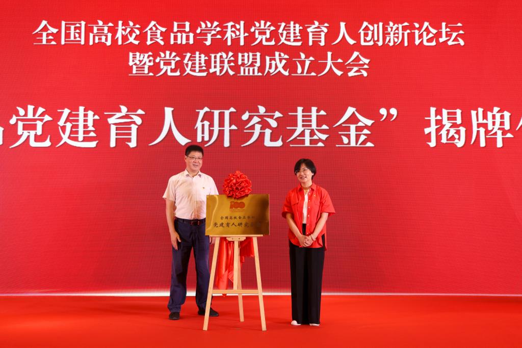 院长刘元法宣读了食品学科党建联盟成员名单,朱庆葆为食品学科党建联盟成员授牌。陈艳、周建军共同为“全国高校食品学科党建育人研究基金”揭牌。