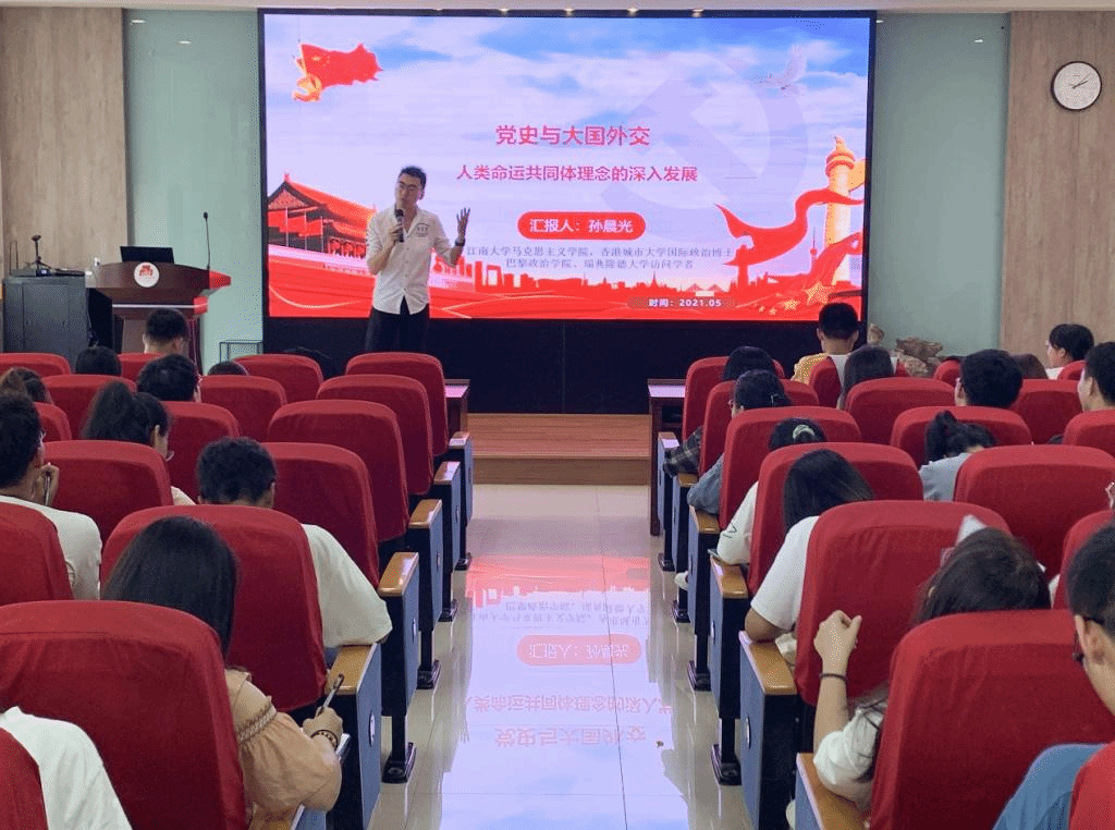 2021上半年入党积极分子培训班党课第三讲在食品楼D912举行。本次党课邀请到马克思主义学院孙晨光副教授主讲,辅导员刘鑫主持,全体入党积极分子参加了学习。