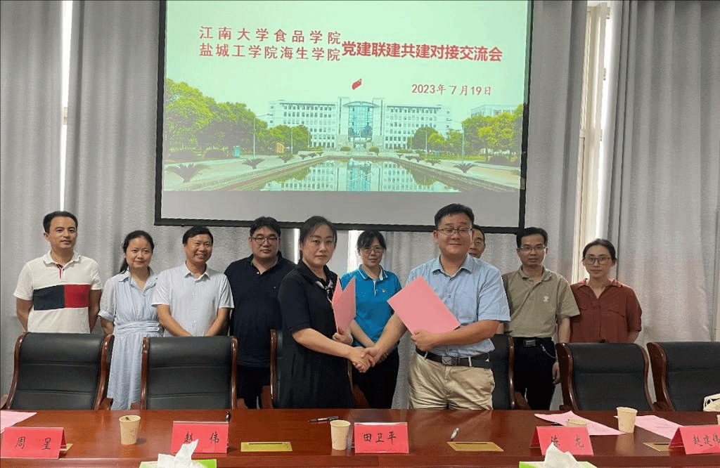 食品组分与物性研究中心、食品资源与综合利用研究所联合教工党支部与盐城工学院海洋与生物工程学院党总支签订了《党建联建共建协议书》,就此开启了双方进一步深入合作的新起点、新征程。