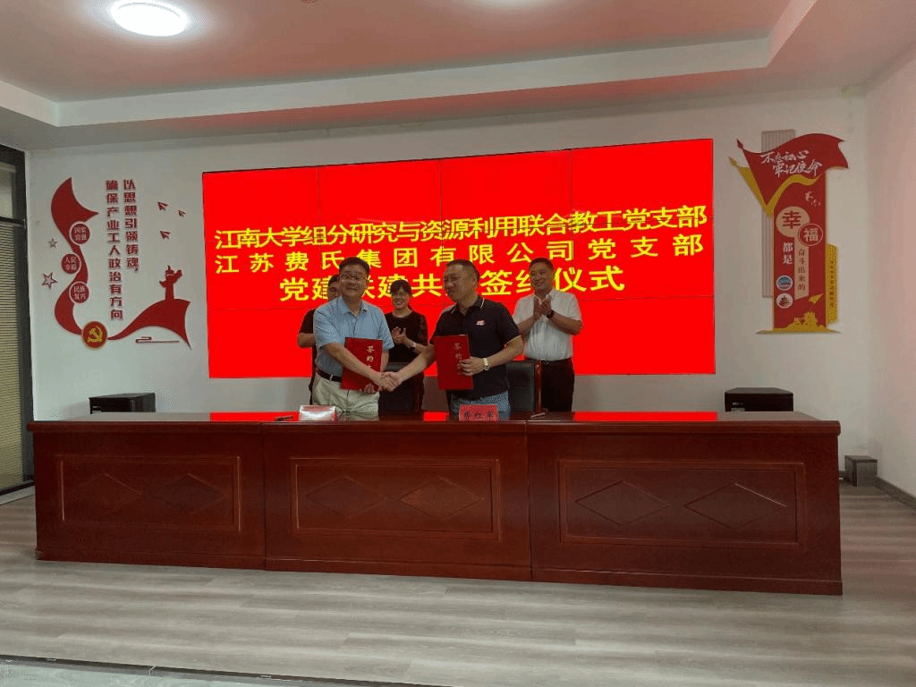 食品组分与物性研究中心、食品资源与综合利用研究所联合教工党支部与江苏费氏集团有限公司党支部签订了《党建联建共建协议书》。同时,小黄书