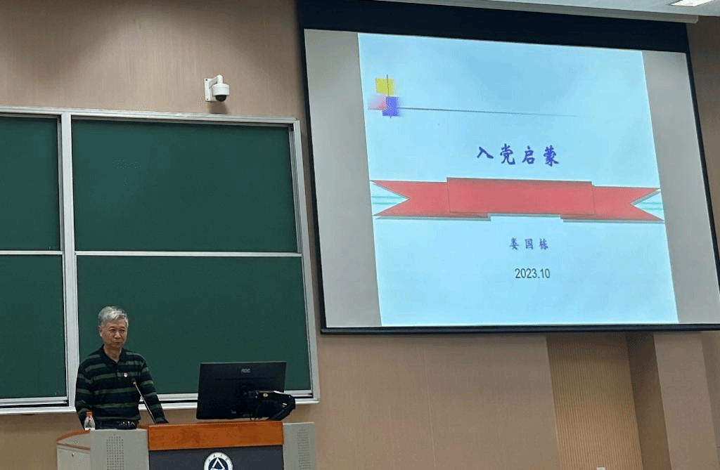 娄国栋从党的历史、党的章程、新的征程,教育要求等四个部分为同学们上了入党启蒙第一课。他以“如何理解党的先进性”为切入点,让同学们对党的章程有了初步认识,从而引出新时代学子应该如何端正入党动机,为走好中国的新征程而努力奋斗。他引导大家认真学习党的理论知识,坚定理想信念,增强对中华民族伟大复兴的责任感和使命感,希望同学们都能成长为怀“大爱”“大德”之人,