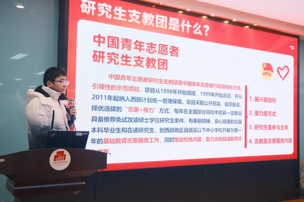 学生党员代表、研究生支教团成员刘振宇从支教团的定位、选择支教团的原因、需要做哪些准备、收获与展望等四个方面分享自己加入支教团的经历,同时讲述自己入党和追寻梦想的心路历程。