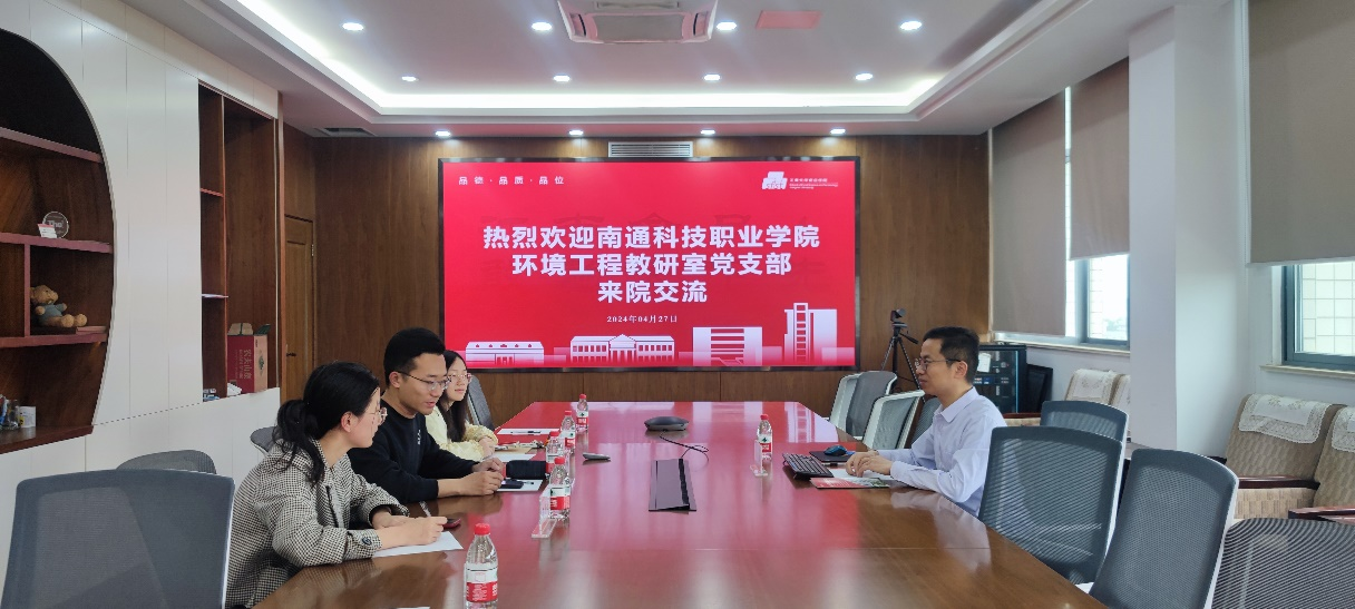 刘璇对闫生荣来访表示热烈欢迎,并简要介绍学院基本情况以及学生党建工作基本情况。闫生荣介绍南通科技职业学院基本情况,并围绕环境工程教研室党支部在“全国党建工作样板支部培育创建单位”建设期间的工作进行交流。