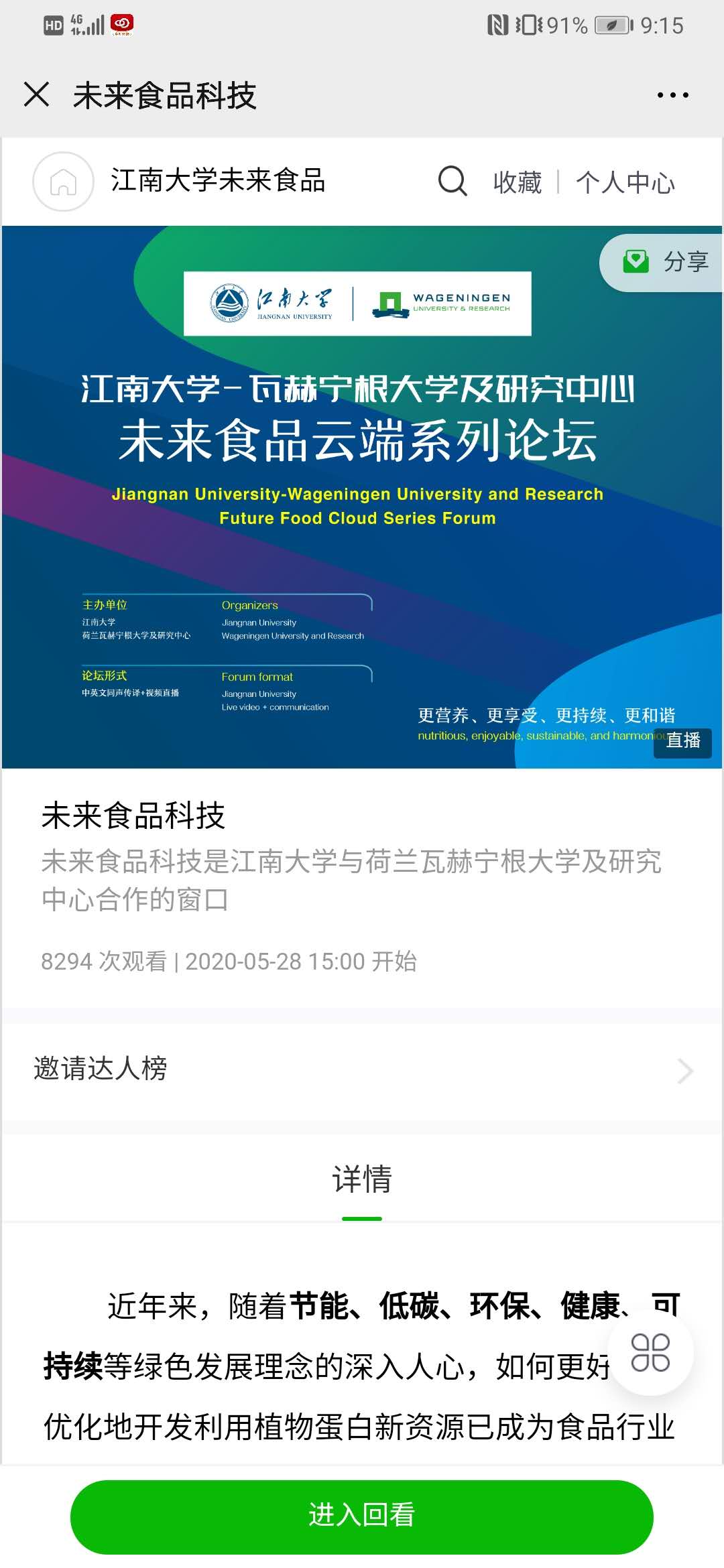 和瓦赫宁根大学及研究中心共同主办。计划通过系列论坛的举办,能够为国际食品科学工作者提供交流、拓展科研合作的良好平台,并促进食品学科未来发展的国际交流与合作。