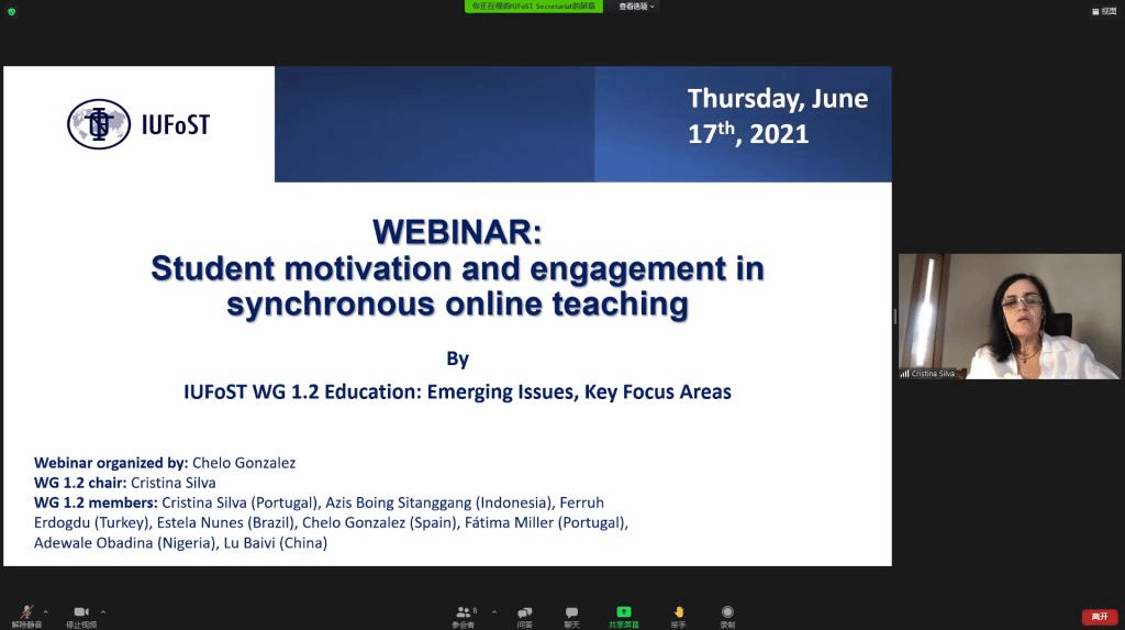 2021年6月17日,国际食品科学技术联盟(IUFoST)主办“同步在线教学中的学生动机和参与度”网络研讨会,就如何提高学生学习动机、如何实施在线教学评估以及如何实现线上教学互动等问题进行了探讨。研讨会由Chelo Gonzalez主持,小黄书