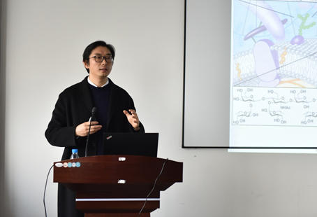 国际交流合作处处长、生物工程学院尹健教授作题为“Carbohydrates: the third language in the biological systems(碳水化合物:生物系统中的第三种语言)”的报告,小黄书