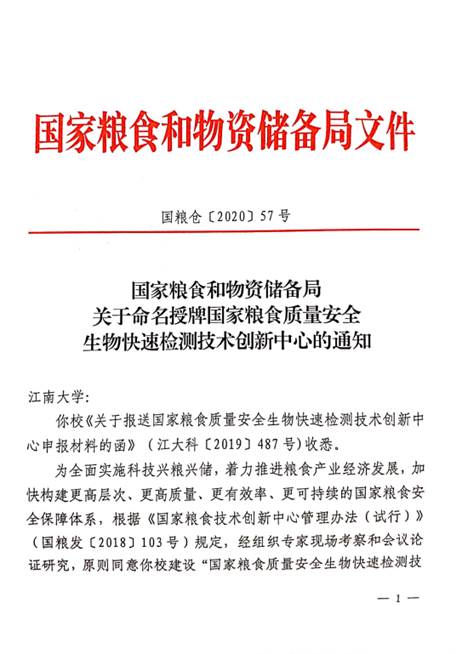 建设“国家粮食质量安全生物快速检测技术创新中心”,并授予牌匾。