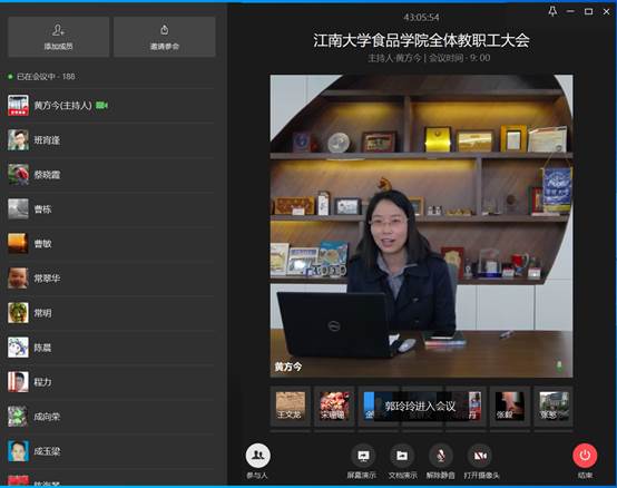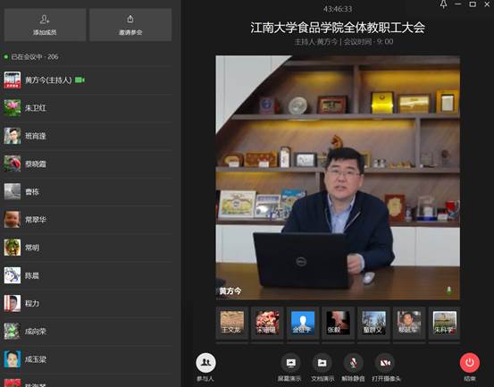 傅莉莉首先向各位教职工传达了学校开学的工作安排,回顾了学院的疫情防控措施和疫情期间在线教学、复工复研方面开展的工作,对全体食品人在抗疫期间表现出来的大局意识、团结奋斗和使命担当的工作状态给予高度评价,希望大家在安全有序恢复教学科研工作的同时牢牢绷紧疫情防控这根弦,一同努力取得最后胜利。