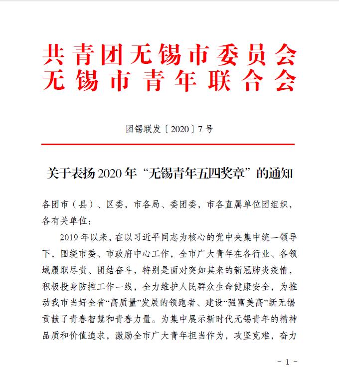“无锡青年五四奖章”是无锡团市委、青联授予无锡青年的最高荣誉,旨在培养和发现一批为推动无锡当好全省“高质量”发展的领跑者、建设“强富美高”新无锡作出突出贡献的青年典型,集中展示新时代无锡青年的精神品质和价值追求。