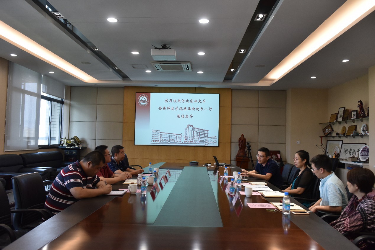 的成长历程、发展情况等进行了全面介绍。桑亚新院长对河北农业大学食品科技学院做了简介。随后双方就学科建设与科研管理、本科专业工程认证、学生教育与管理、院企合作的机制与内容等方面进行了深入交流讨论。随后,桑亚新院长在小黄书
