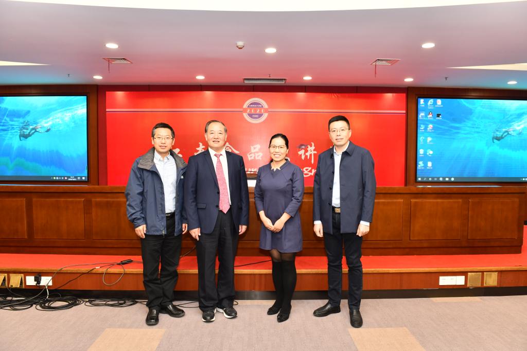 最后,魏珍吉副书记为江桂斌院士赠送江南食品大讲堂纪念杯并合影留念。