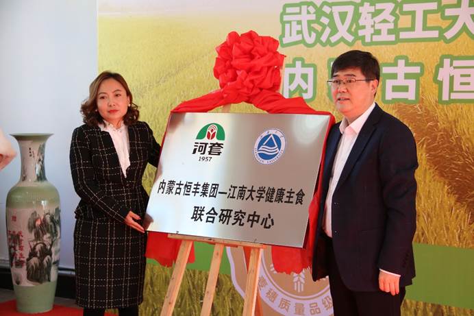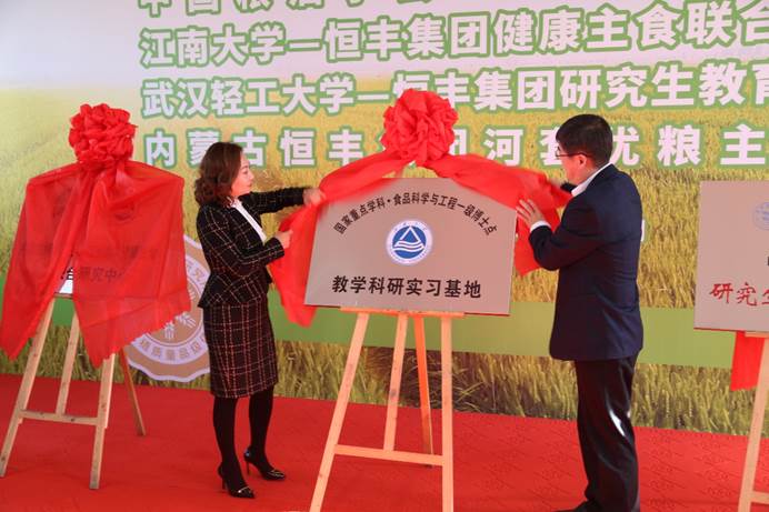 与内蒙古恒丰集团健康主食联合研究中心和教学科研实习基地揭牌。揭牌仪式后小黄书