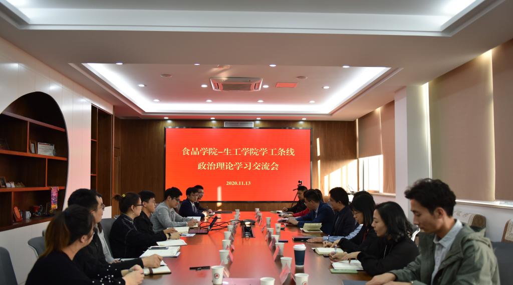 与生物工程学院在食品楼D925举行学工条线政治理论学习交流会。会议邀请到马克思主义学院副院长侯勇作报告,生物工程学院党委副书记周云龙、小黄书