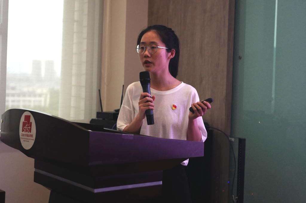 张诗佳同学介绍了食品安全“三走进”项目“用知识守护人民舌尖上的安全”的志愿服务行动。团队经过近十年打磨,开发出一套体系化食品安全课程,并根据社会需求,及时增加宣讲主题和内容。项目先后入选全国食品安全宣传周“大学生食品安全与营养中国行”重点项目,荣获江苏省优秀青年志愿服务项目称号,受邀参加“省级学会、高校科协服务创新创业成果展”、第二届江苏志愿服务交流会”省直属参展项目等。张诗佳表示,民以食为天,食以安为先,团队会继续将专业知识运用到社会实践中去,为铸就健康城墙贡献青春力量。