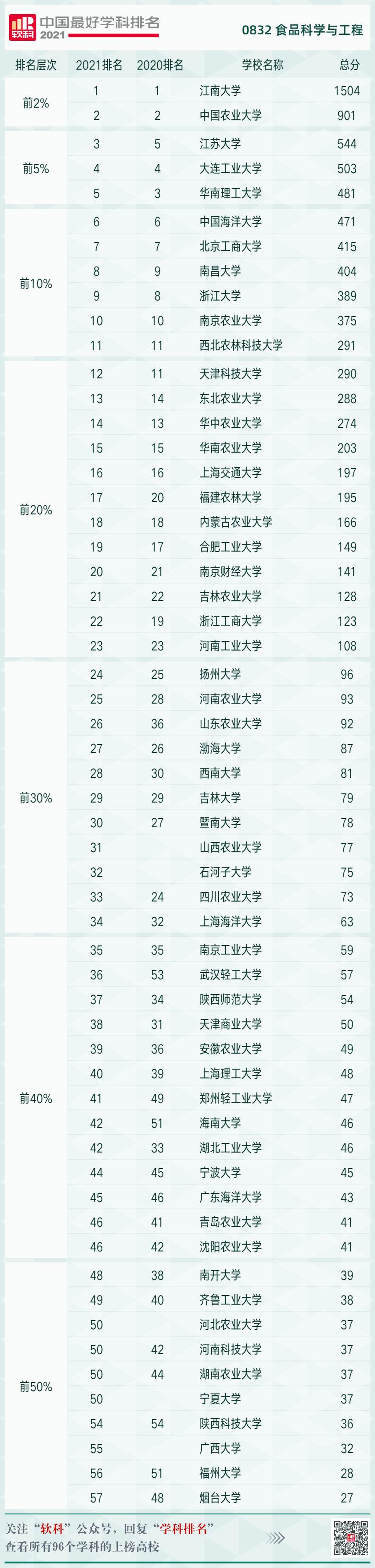 的食品科学与工程学科在2009、2012、2017年的全国教育部学科评估中位列第一(A+),于2017年入选国家“双一流”建设学科,并于2019、2020、2021年连续三年在软科世界一流学科排名中蝉联世界第一。2021年3月汤森路透农业科学学科ESI排名,小黄书