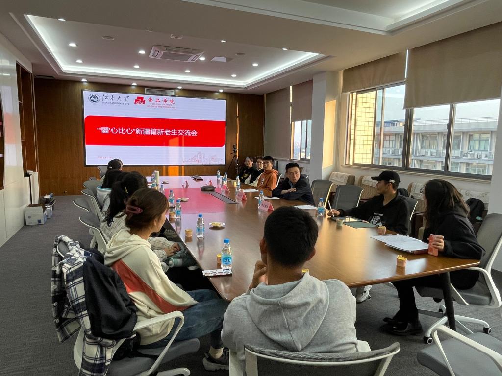 在食品楼D925会议室举办“‘疆’心比心”新老生交流座谈会。新疆维吾尔自治区教育厅派驻小黄书