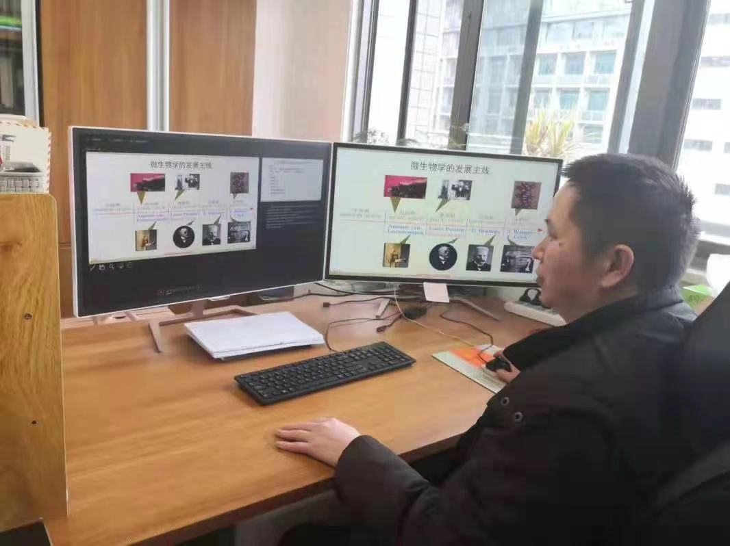 全面开展线上教学工作,师生相聚云端。根据学校部署和安排,在课程组的协调和组织下,学院任课老师利用企业微信、腾讯会议等在线平台进行课程教学工作,为同学们准备和提供了丰富的在线教学资料和教学素材。研究生导师利用线上等形式召开课题组会,指导学生在校安全、有序进行科研实验。教师们居家也“坚守”一线,全力保障教育质量不掉队。