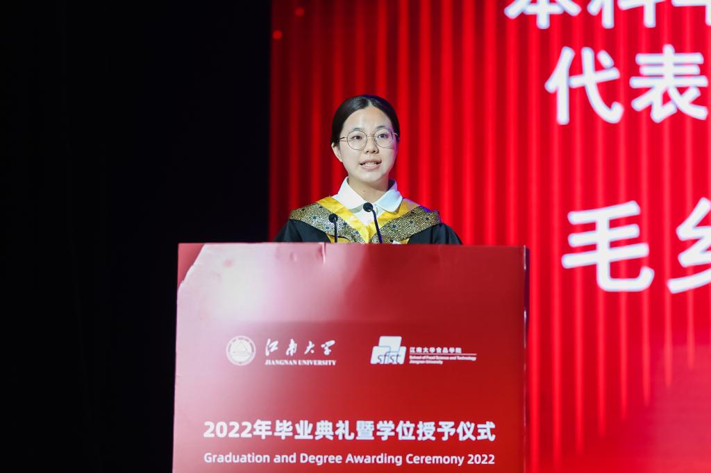 本科毕业生代表毛乡芸发言