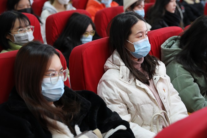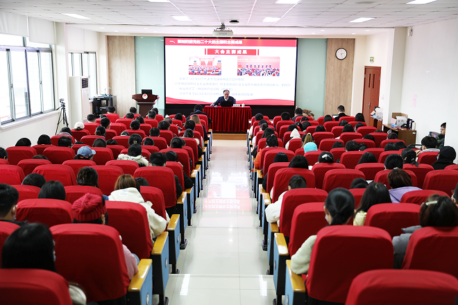 D912会议室为师生代表作学习贯彻党的二十大精神辅导报告。小黄书