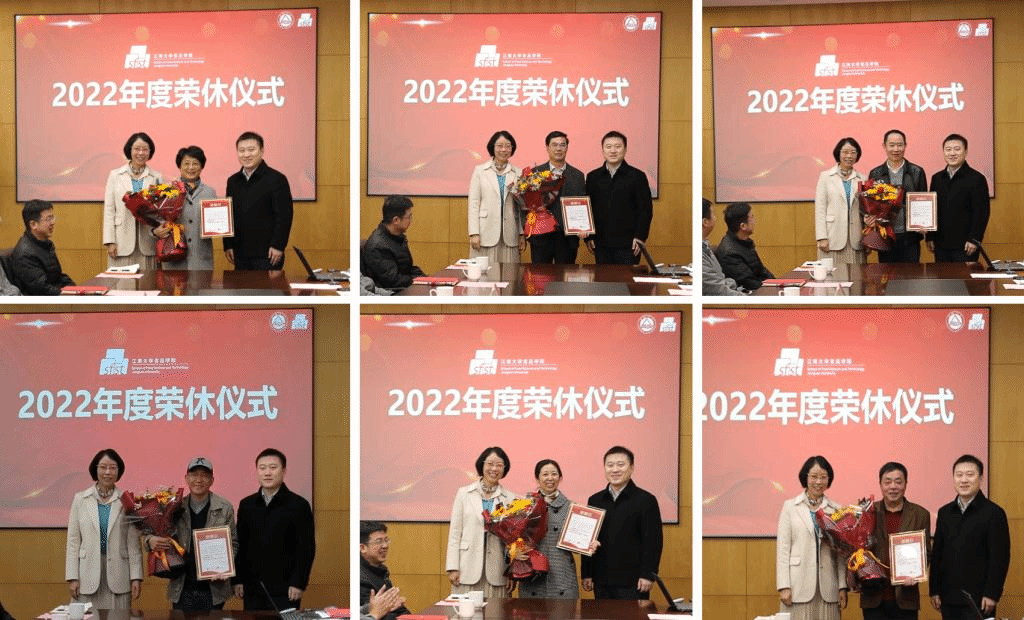 2022年度教职工荣休仪式在学院D910会议室举行,学院党委书记傅莉莉,院长范大明,分工会主席洪雁,2022年度退休教职工以及部分教师代表参加了仪式。仪式由分工会主席洪雁主持。