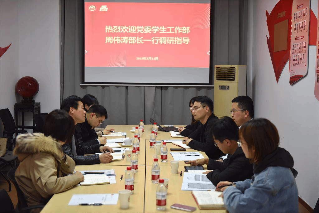 专业布局、学生概况、心理健康、升学就业、思政队伍等方面进行重点汇报。周伟涛对学院的经验做法给予肯定,并指出,要充分利用资源、平台、人才高度集中的优势,着力破解实际工作中的痛点、难点等问题,多措并举实现大学生思想政治工作高质量发展。
