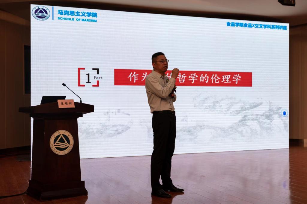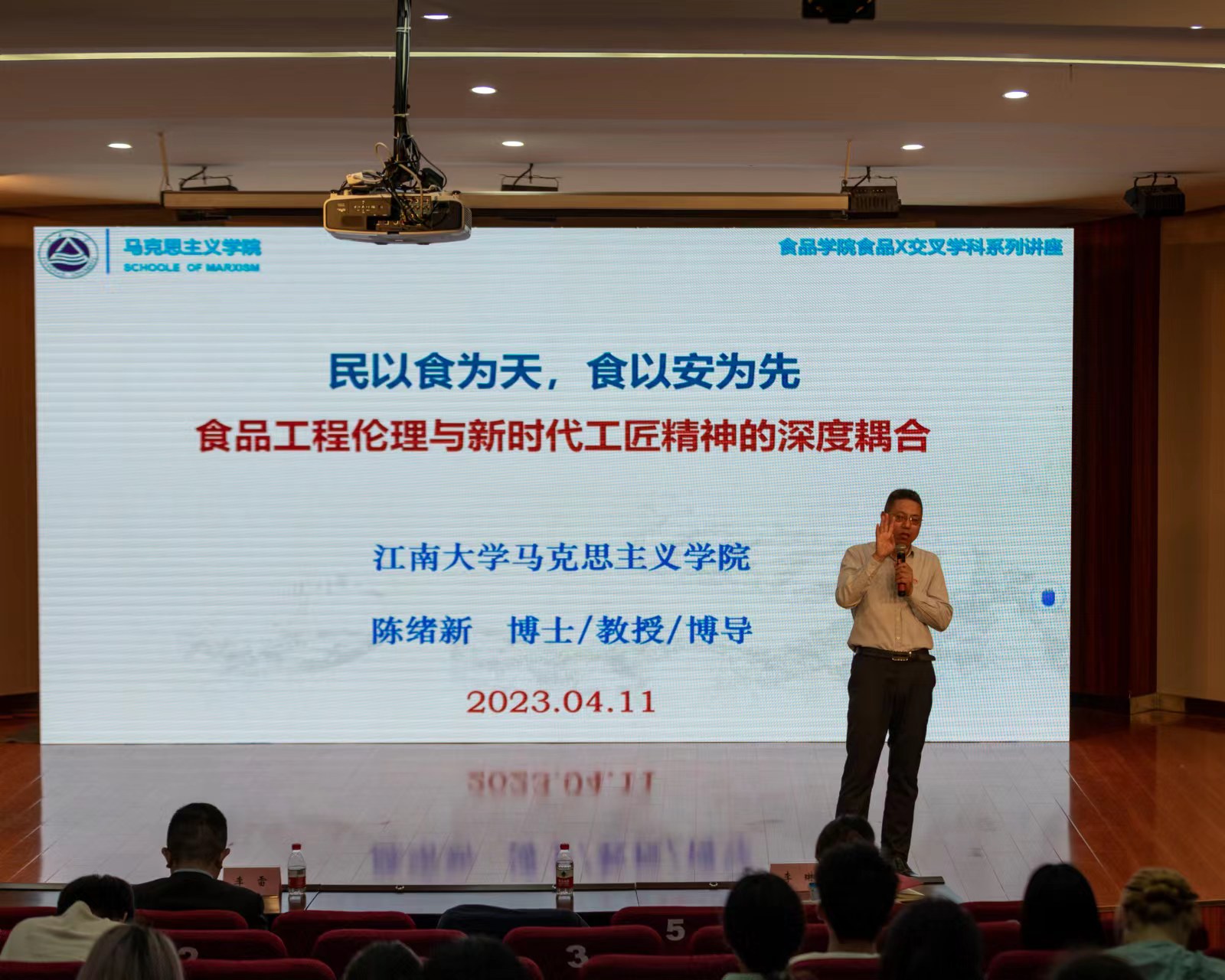 4月11日下午,“食品X”交叉学科系列讲座在北区大学生活动中心再次开讲。本次活动邀请到马克思主义学院博士生导师陈绪新教授作题为《民以食为天,食以安为先——实现食品工程伦理与新时代工匠精神的深度耦合》的报告。小黄书