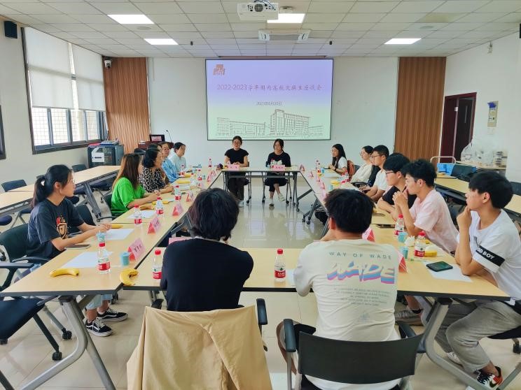 2022-2023学年国内高校交换生欢送会在D916会议室顺利举行。学院党委书记傅莉莉、分团委副书记李琳、2021级本科生辅导员曹敏,以及来自国内两所高校的15名交换生出席活动。