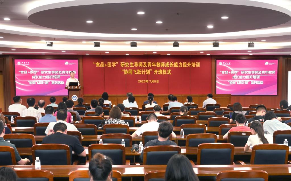 “食品+医学”研究生导师及青年教师成长能力提升培训“协同飞跃计划”系列活动成功举办。8日下午,开班仪式在校图书馆五楼报告厅隆重举行。特邀专家同济大学校长郑庆华,小黄书