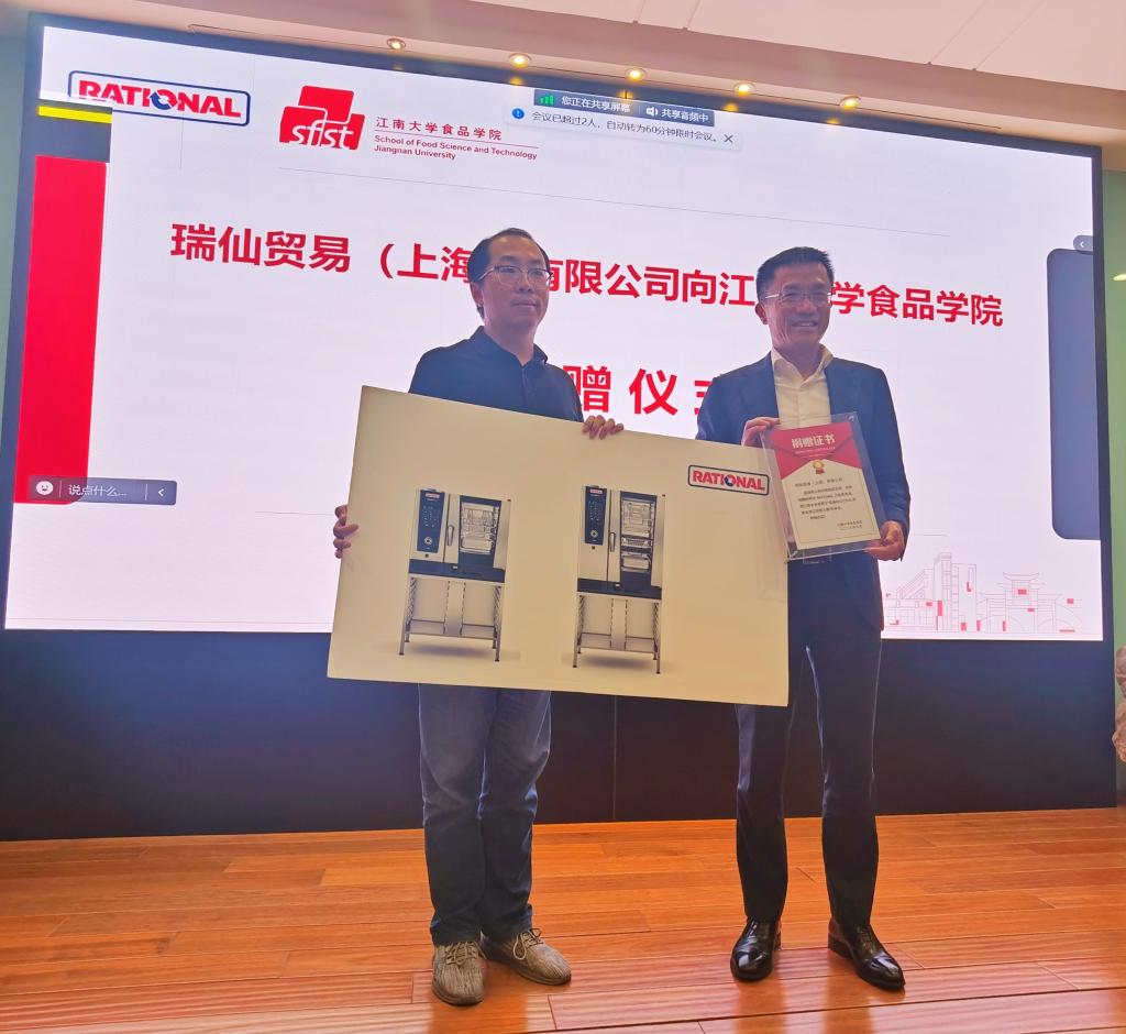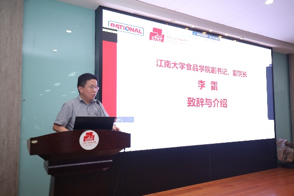 联合举办的首届“Rational杯”食品加工创新大赛在食品楼D912报告厅正式启动。瑞仙贸易(上海)有限公司总经理俞文军、市场总监栾斌、应用研发总监唐学燕、华东区域总监吴建友、华东区域经理杨博,小黄书