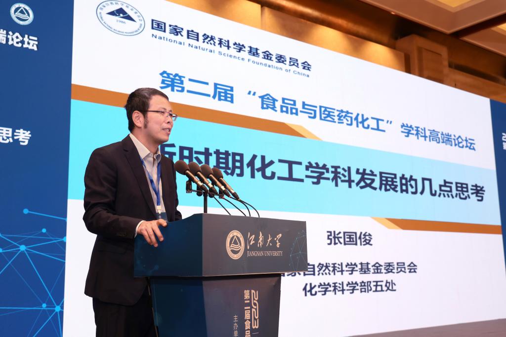 承办,充分体现了国家基金委对学校的信任,也是对我们继往开来推进食品、医药、化工等学科高质量发展的莫大鼓励。他指出,本次高端论坛,将重点围绕食品与医药化工学科发展现状和态势、所面临的挑战和机遇等方面进行战略研讨和专题研讨,对掌握学科未来发展方向,推进学术前沿创新和实践,具有十分重要的意义。