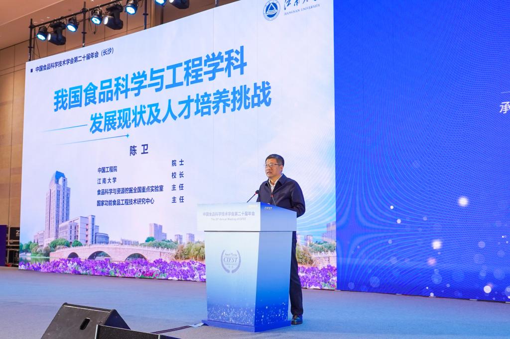 校长、食品科学与资源挖掘全国重点实验室主任陈卫作《我国食品学科发展现状及人才培养挑战》专题报告。他指出,历经百余年发展,我国现已形成世界最大、影响力十足的食品学科群。面向未来,一要服务国家战略,构建政产学研整合的教育生态圈;二要将人才培养从学科导向转为“产业布局+未来需求导向”;三要坚持立德树人根本任务,优化师资队伍评价机制,激发青年科技人才创新活力。