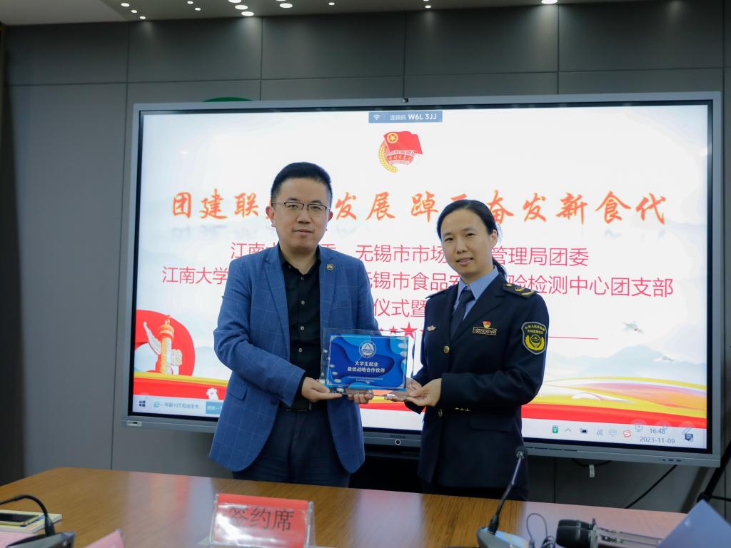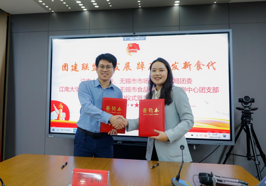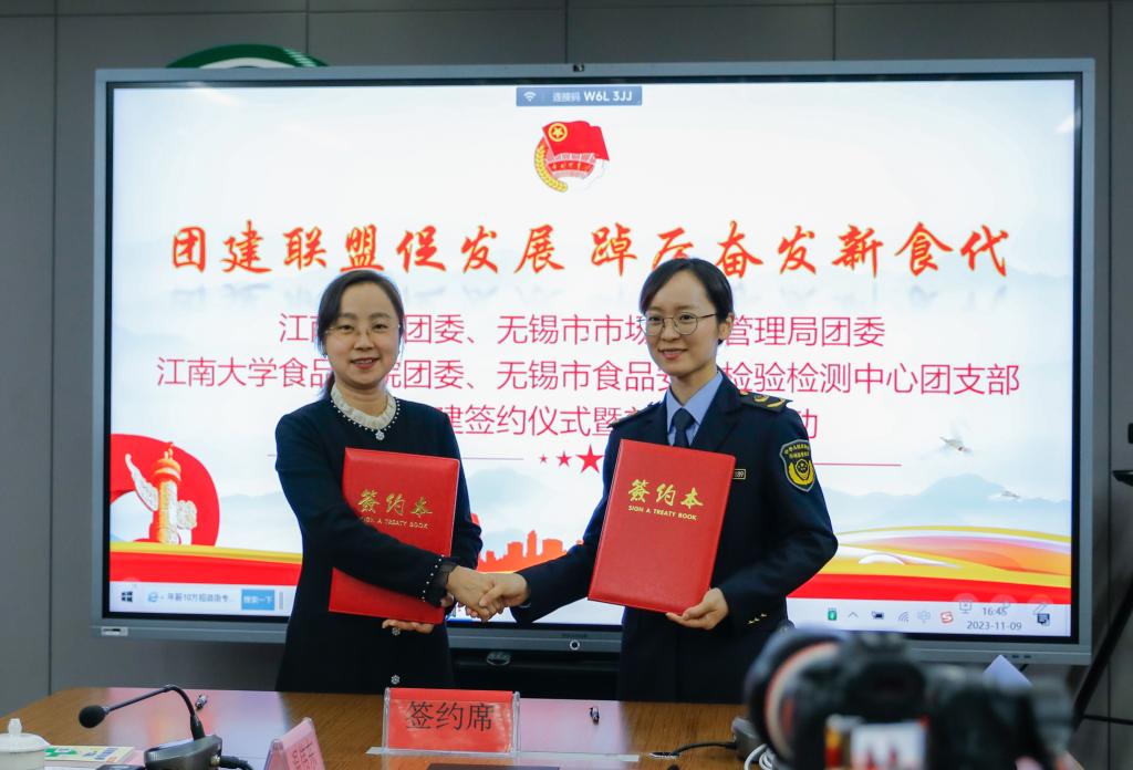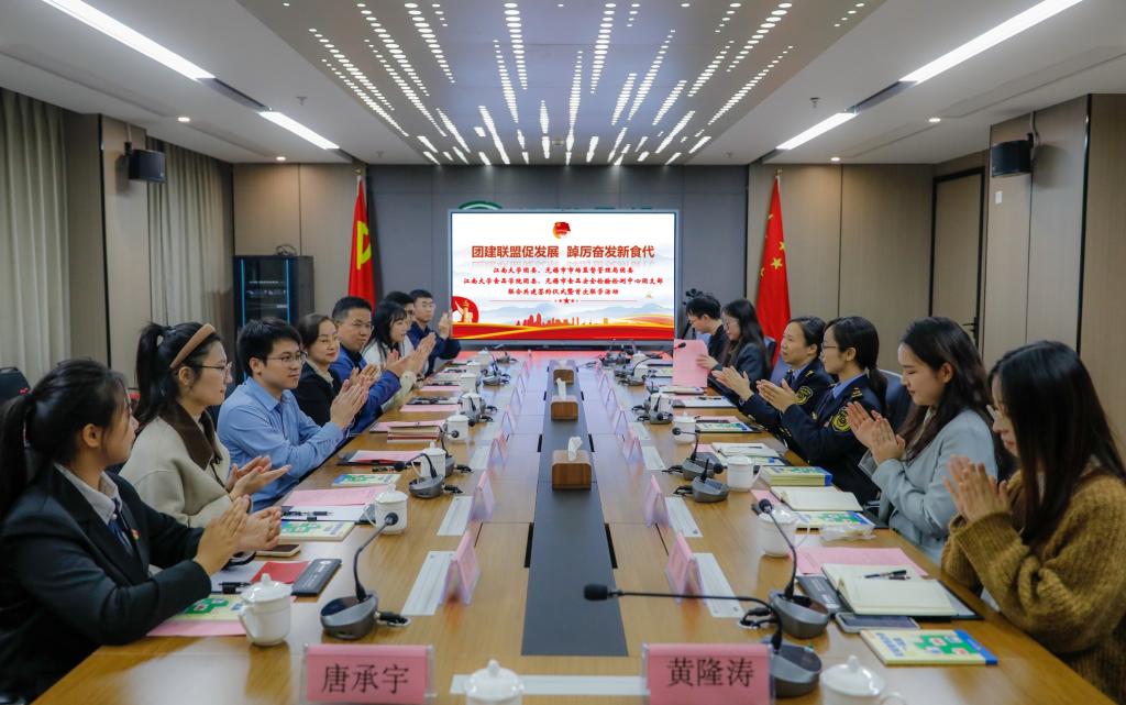 ——无锡市食品安全检验检测中心团建联建共建协议书》。双方旨在“以共建促团建,以共建促合作,以共建促发展”,教育、科技、人才三位一体,不断完善“政产学研检”协同创新机制。