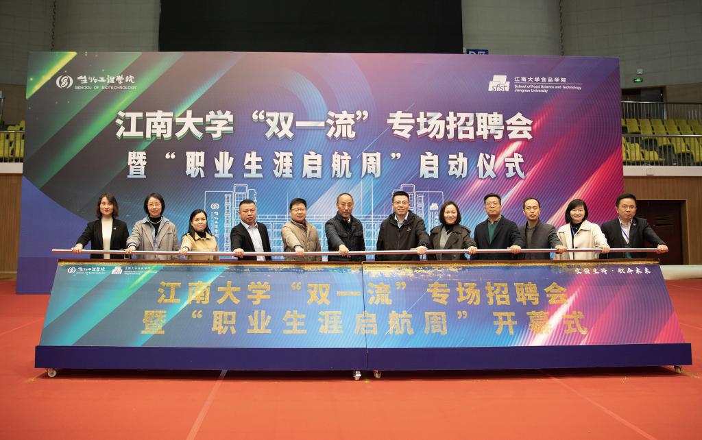 党委常委、统战部部长朱飞,无锡市人社局人才开发和对外合作处副处长吴莹,上海喜庆日供应链管理有限公司总经理吴琼,融媒体中心主任兼党委宣传部副部长胡振宇,团委书记魏珍吉,社会合作与校友联络处处长周云龙,就业指导中心主任兼学生工作处副处长单筱婷,教务处副处长吴宝锁,小黄书