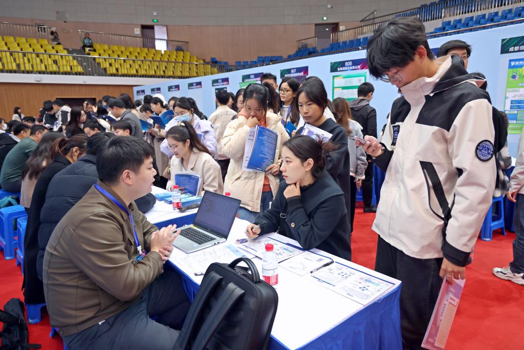 招聘会现场气氛热烈,毕业生向用人单位积极投递简历,就公司概况、薪资水平、发展前景等进行详细了解。部分企业还进行了现场面试,和学生初步达成签约意向。
