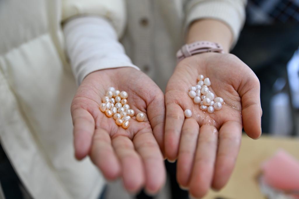 活动伊始,工艺师为大家分发了珍珠蚌和制作工具,详细讲述了珍珠的基本知识以及珍珠饰品的制作步骤。在工艺师的指导和帮助下,大家使用专业工具进行开蚌。当珍珠蚌打开的瞬间,一颗颗珍珠让人眼前一亮,引来了大家的阵阵欢呼声,现场气氛热烈欢快。通过洗珠、浸泡、抛光、打孔、粘合等过程,再根据珍珠的样式、色彩选择配饰,一件件精美的珍珠饰品在老师们手中诞生。