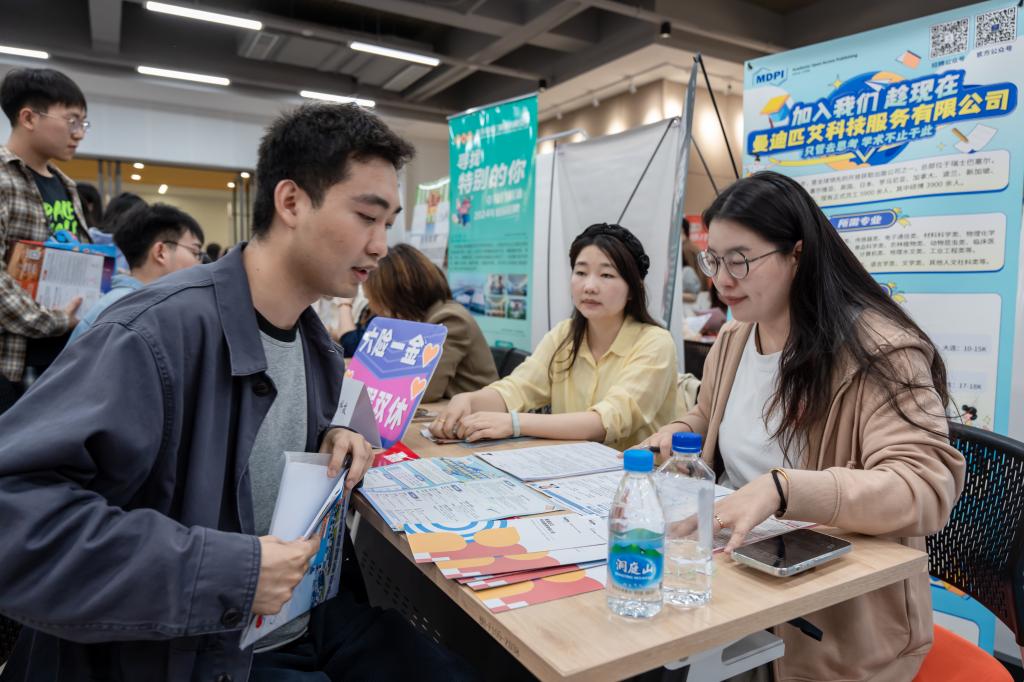 招聘会现场,各家单位通过海报、展板、手册、视频、产品实物等多种形式进行宣传,竞相抛出橄榄枝。前往应聘的同学针对就业地点、薪资待遇、发展理念、上升通道等内容与用人单位深入交流。部分单位现场开展面试,与学生达成初步签约意向。一些人力资源官表示:“小黄书