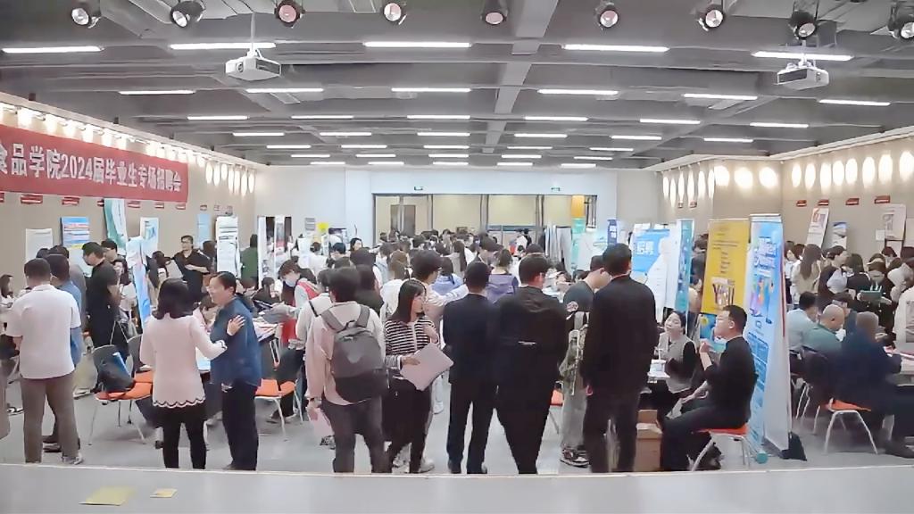 食品科学与工程专业2024届本科毕业生王雪莹早在大三伊始就着手准备就业,从个人简历修改到面试技巧学习,从企业背景筛选到心仪岗位确定,目前她已收到多份录用通知。食品科学与工程专业2024届硕士毕业生黄雅褀则表示,非常期待加入前景良好的油脂工艺设备生产企业,助力老百姓吃得更加营养、更加健康。现场还有部分往届毕业生、低年级在校生和慕名而至的兄弟院校学生,期待成功签约或提前感受氛围。整个招聘会持续4个小时,现场人头攒动,气氛十分热烈。
