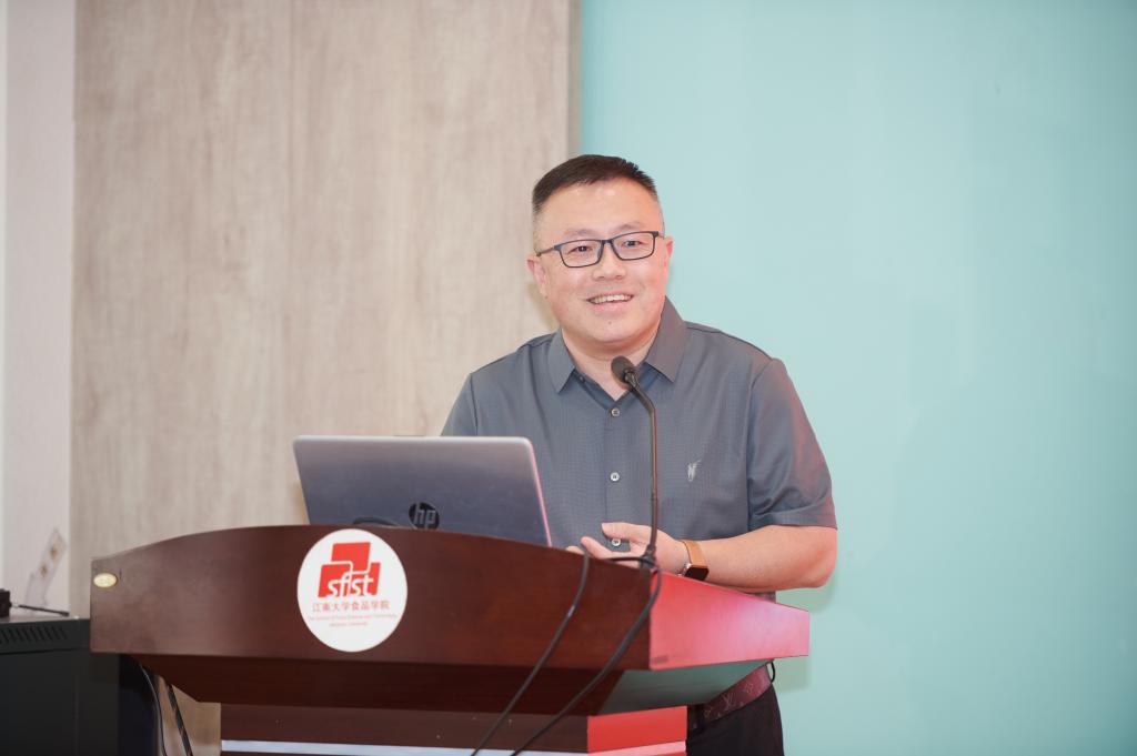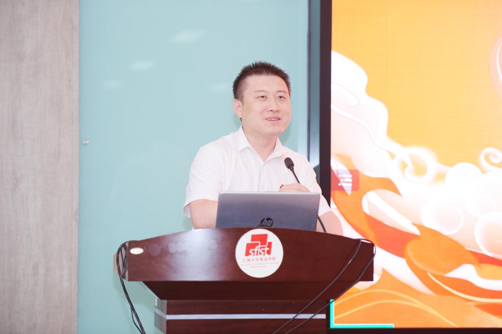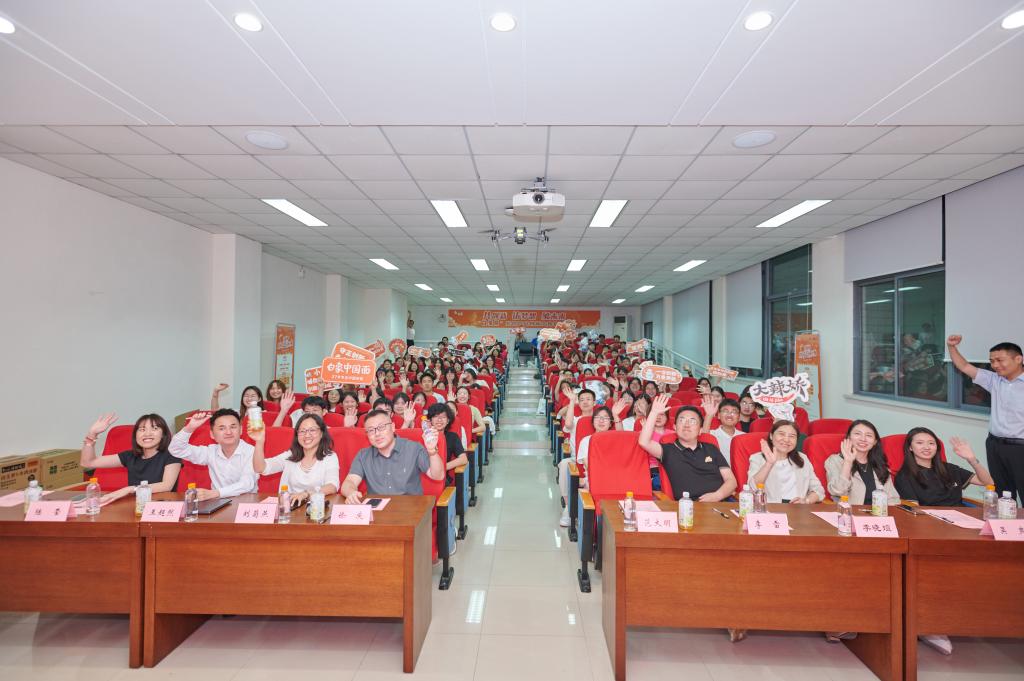 徐庆表达了作为校友返回母校举办创新大赛的欣喜之情,并回望白象食品与学校、学院的合作历史,阐述食品安全与创新之于行业企业的重要意义。他介绍白象食品的核心精神,鼓励同学们组建最强战队,发挥最佳创意,共同努力做“难但是正确的事”。